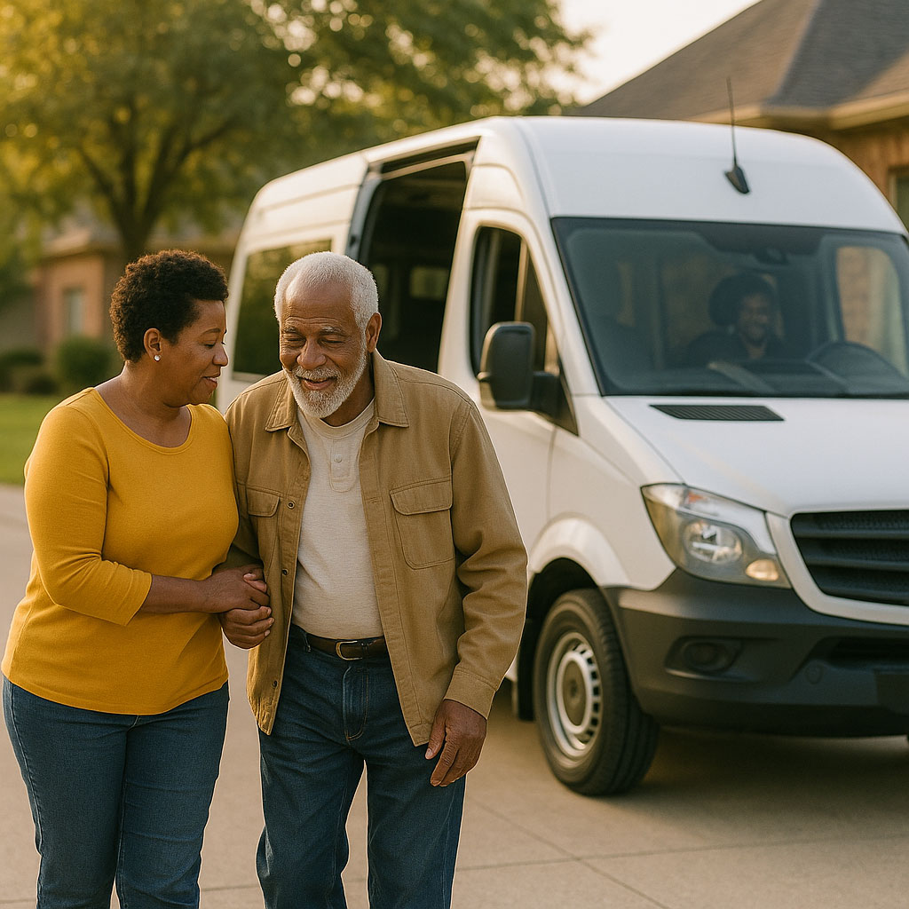 Provides transportation for members and their escorts going to and from doctors visits physical therapy, and pharmacy trips